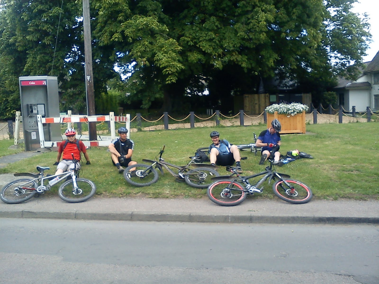 We made it over to the Offley motorbike show, before Rob managed to split his shorts and then fix them (does anyone else carry a needle and thread with them on these rides?), with big hairy Hells Angels going back and forth eying him up. Followed by one of the best downhills round here (Chalk Hill), similar to some of the Chilterns descents.